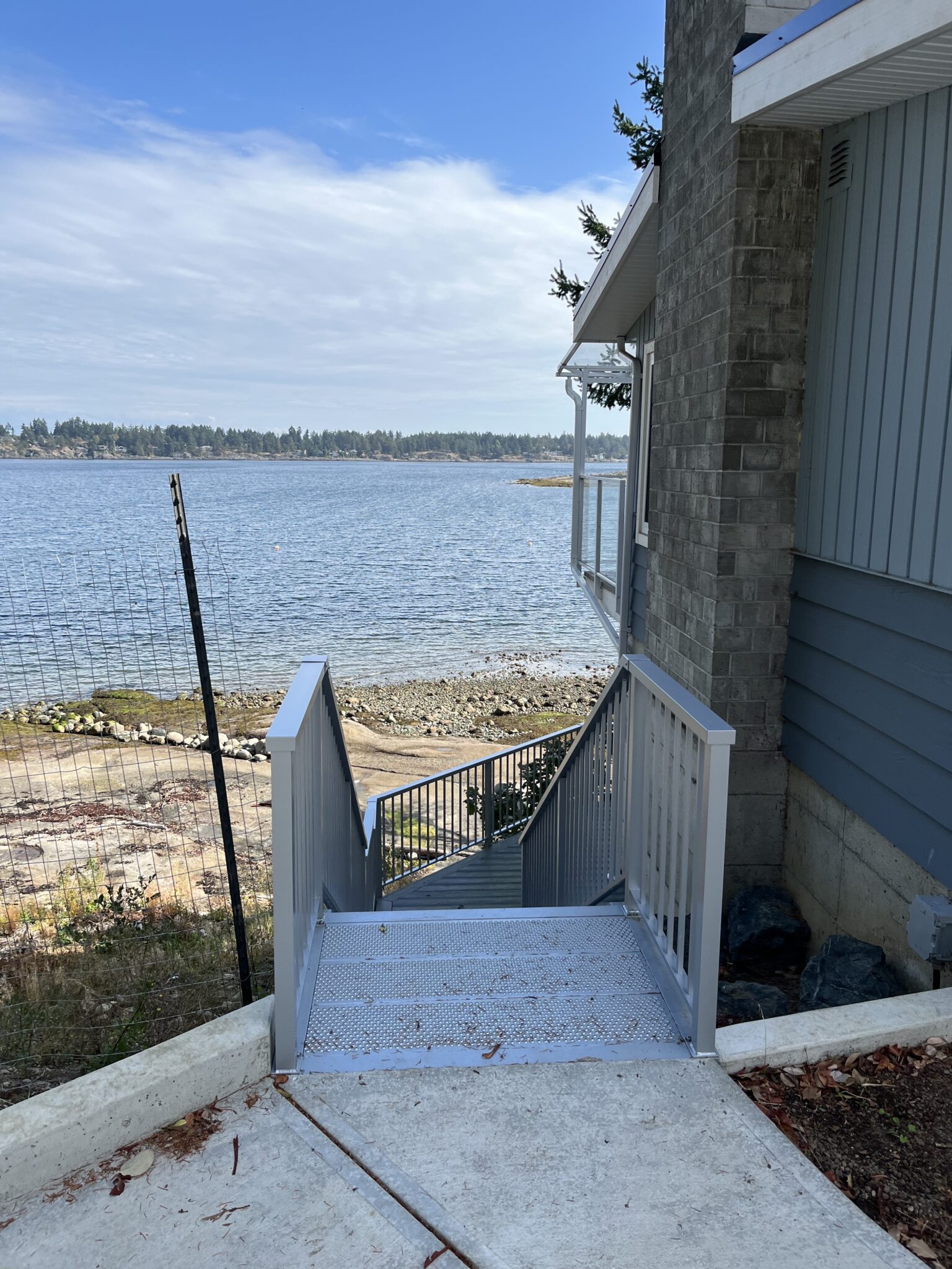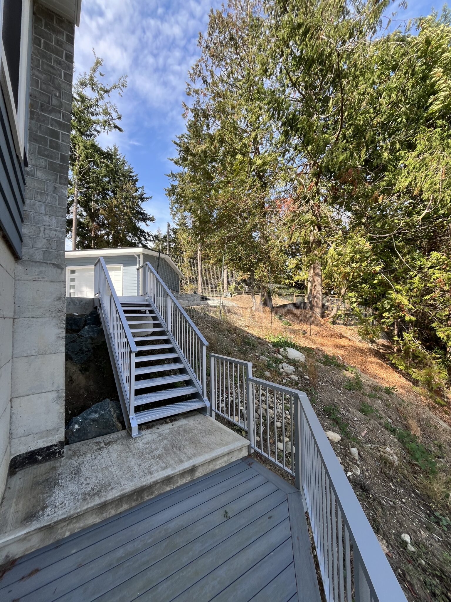 This Nanoose Bay property features a custom aluminum picket fence and railing system built for reliable safety and long-term durability. The powder-coated finish keeps the material looking sharp with minimal upkeep, making it well-suited for everyday use around the yard.