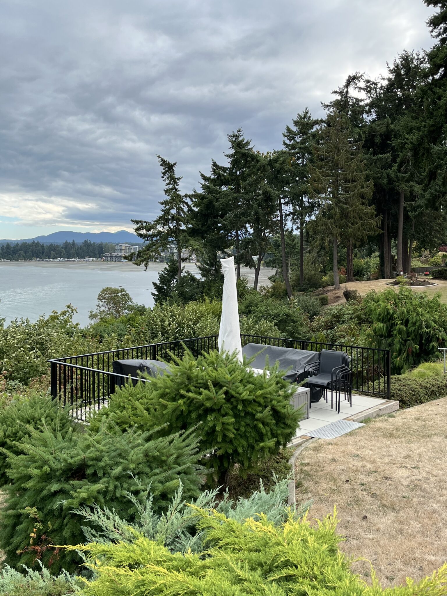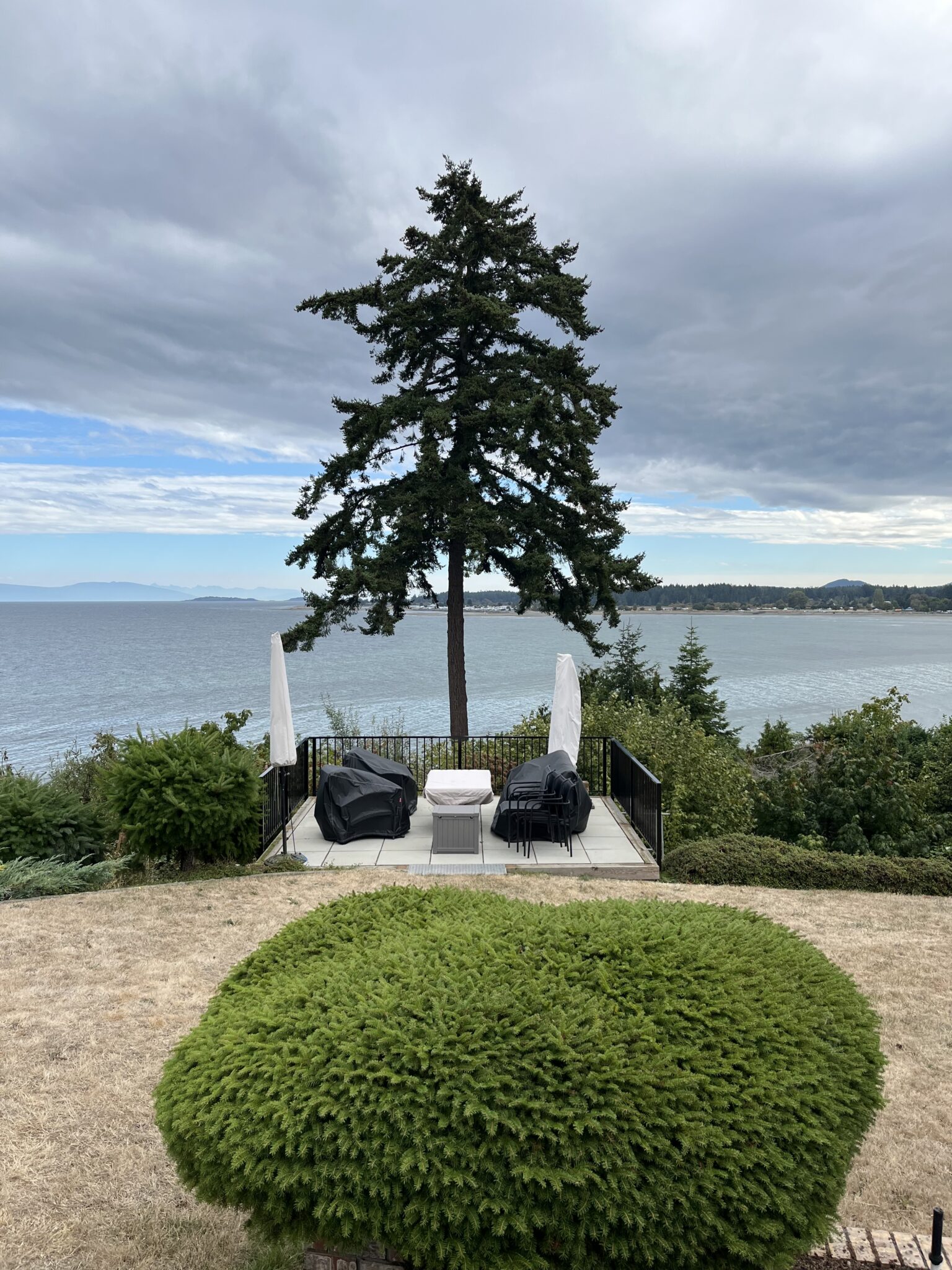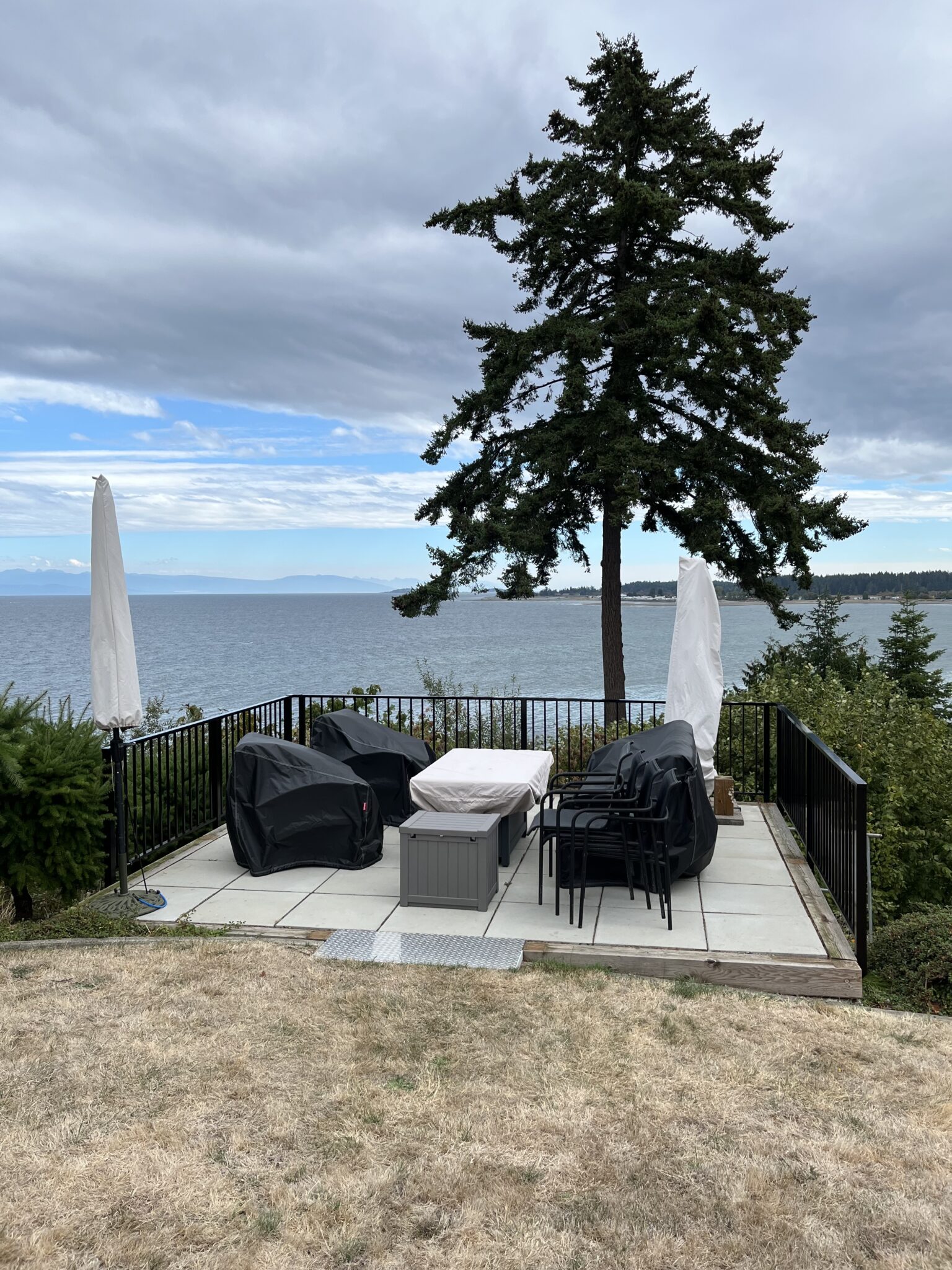This elevated deck in Parksville was updated with a custom aluminum picket railing that defines the edge of the platform and gives the space a more polished, finished look. The new system brings structure to the deck while keeping its open feel intact.